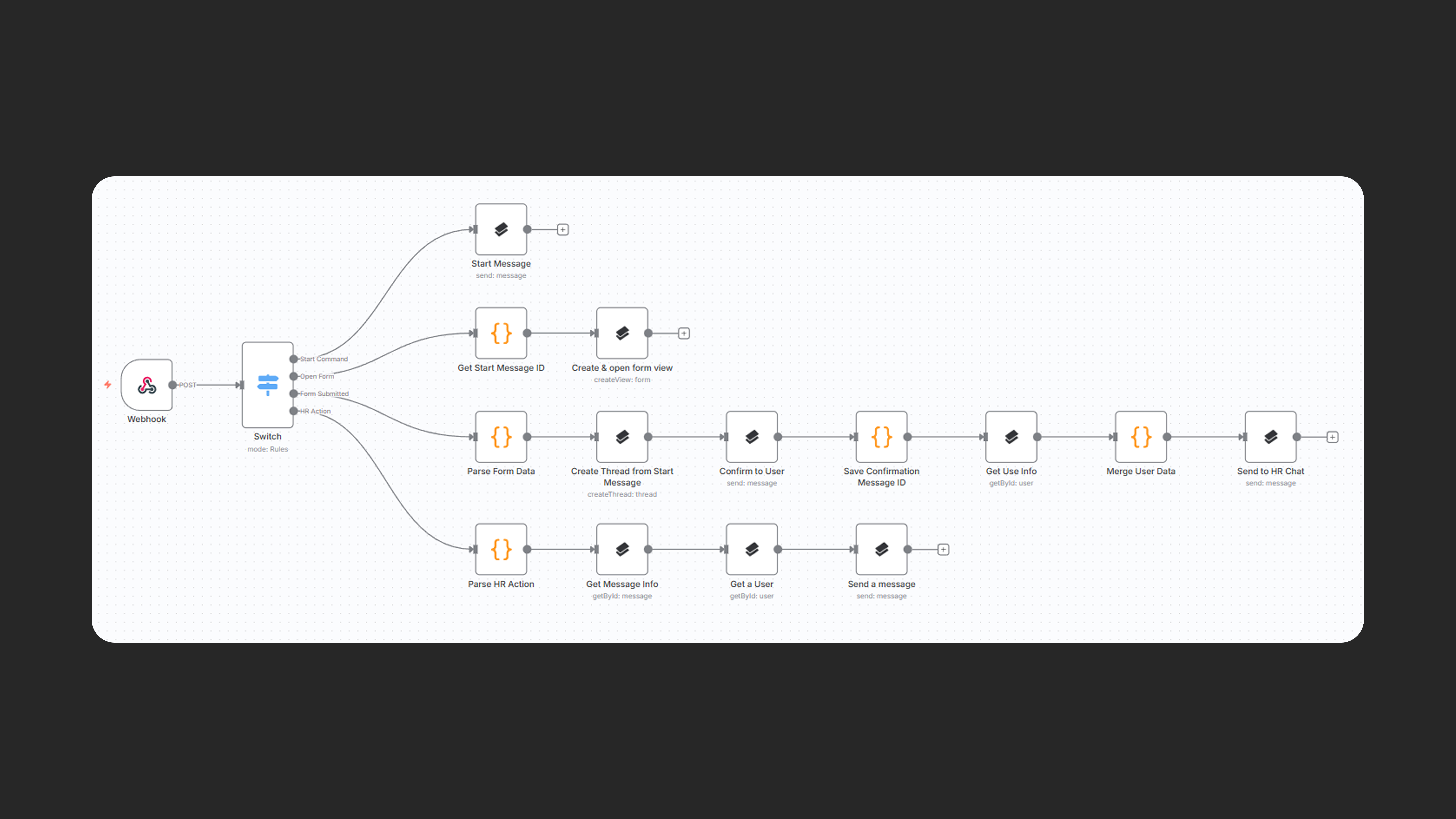 - в ноде Send to HR Chat — указать Entity ID нужного HR-чата