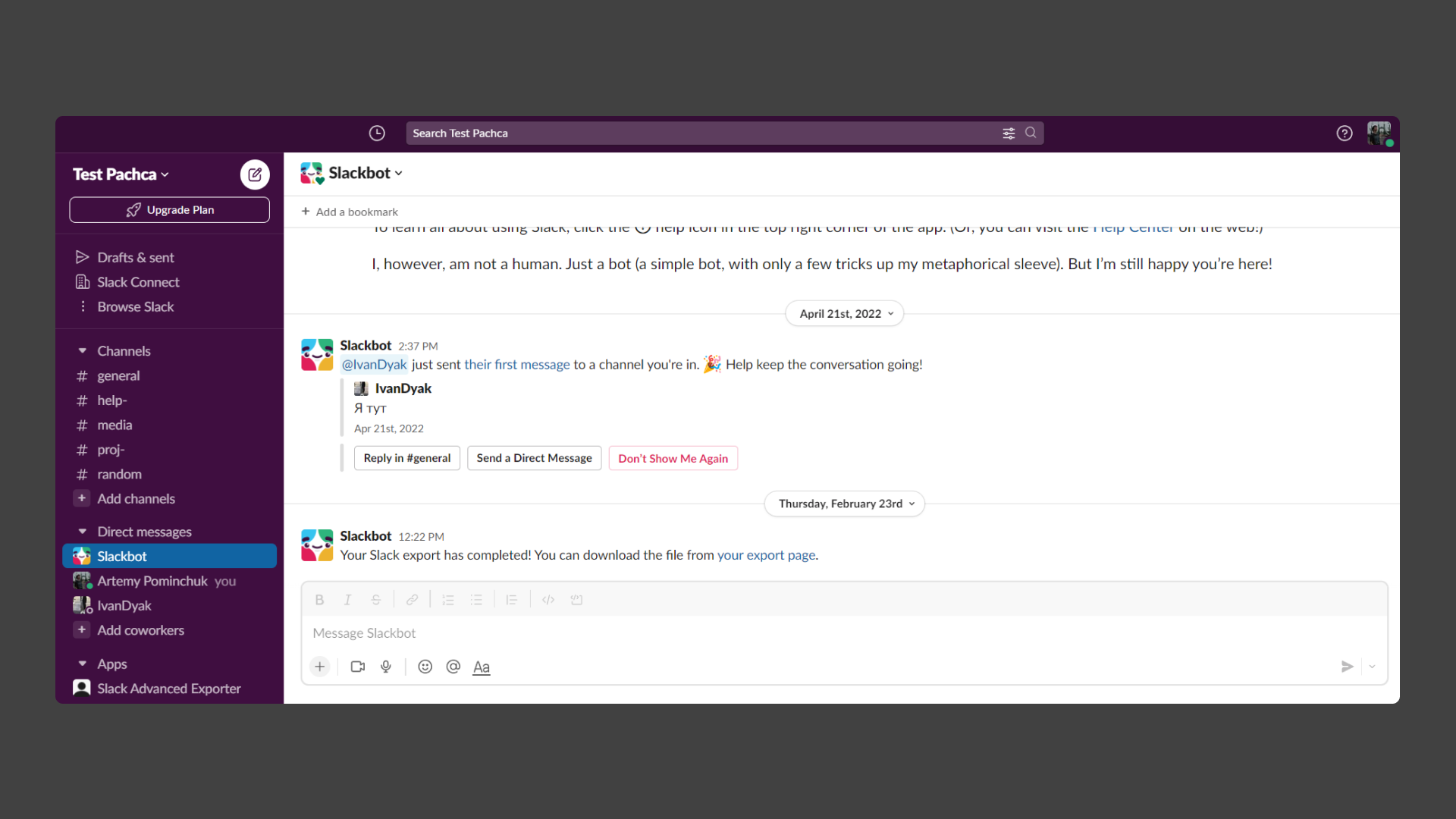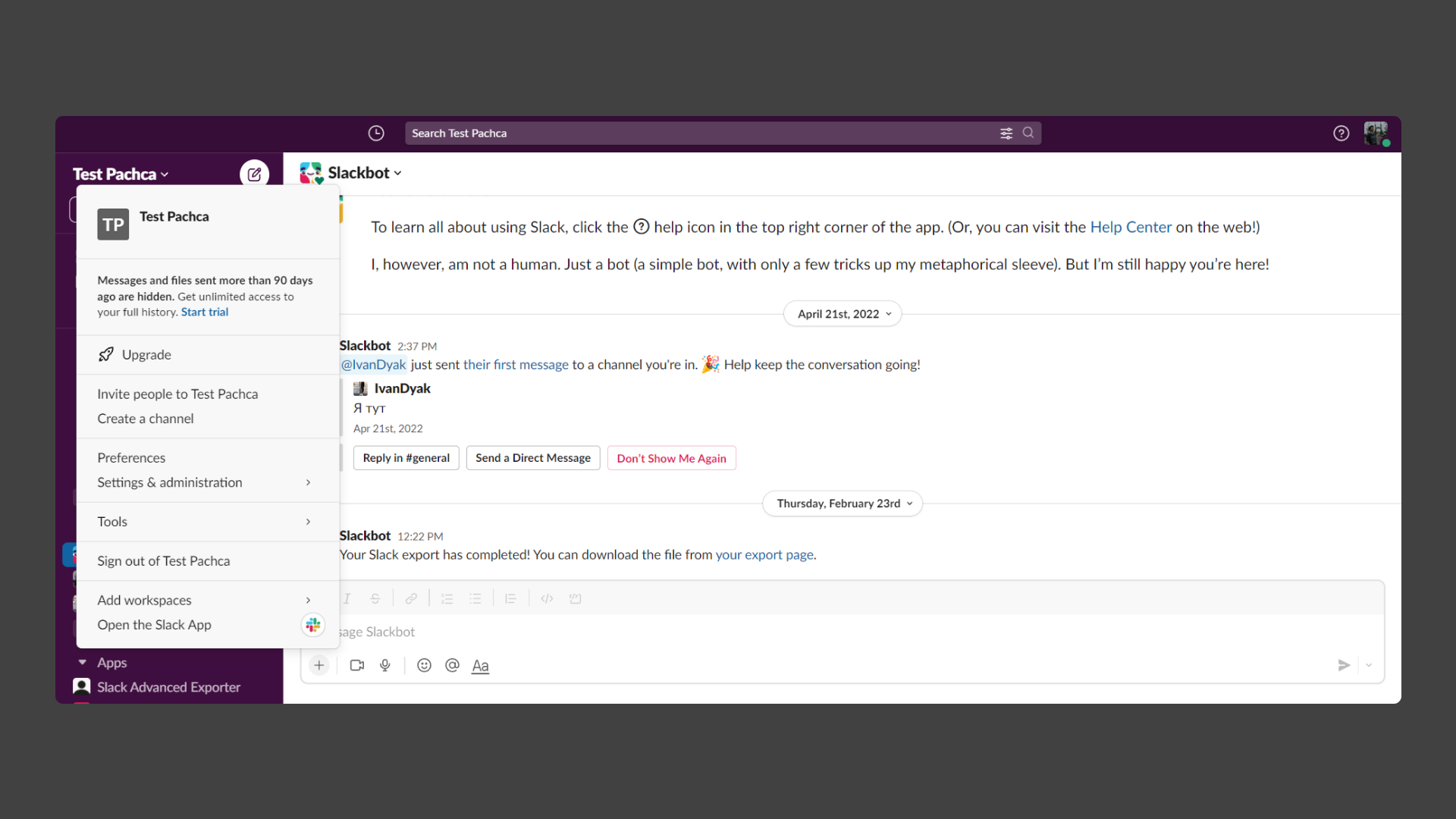 Если вы хотите перенести переписки из Slack в альтернативный сервис, то можете подробнее почитать о том, как их перенести в Пачку или в другой корпоративный мессенджер.