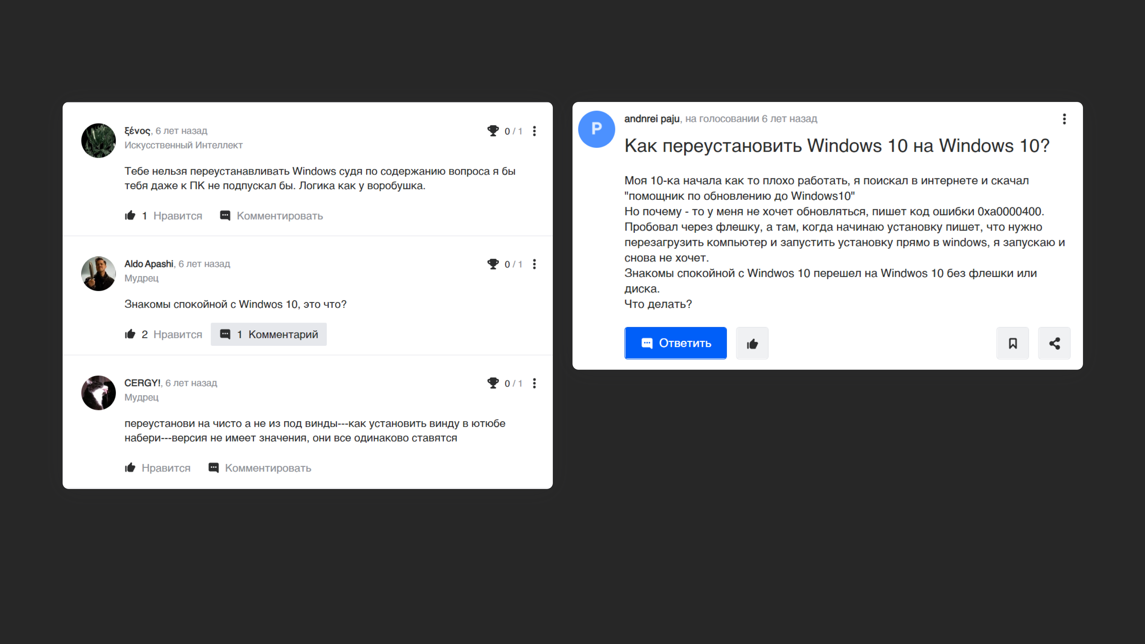 Понятие Треды берет начало в интернет-форумах из 2000-ых. Тогда в интернете развлечений было меньше и люди много чатились в форумах на разные темы. Работало это так: кто-то заводил тему обсуждения, а участники форума оставляли свои комментарии и отвечали на комментарии других. Обсуждения превращались в нить (thread) связанных между собой сообщений, благодаря которым участники приходили (или нет) к какому-то выводу. Самый понятный в рунете аналог тредов — комментарии в ответах Mail.ru