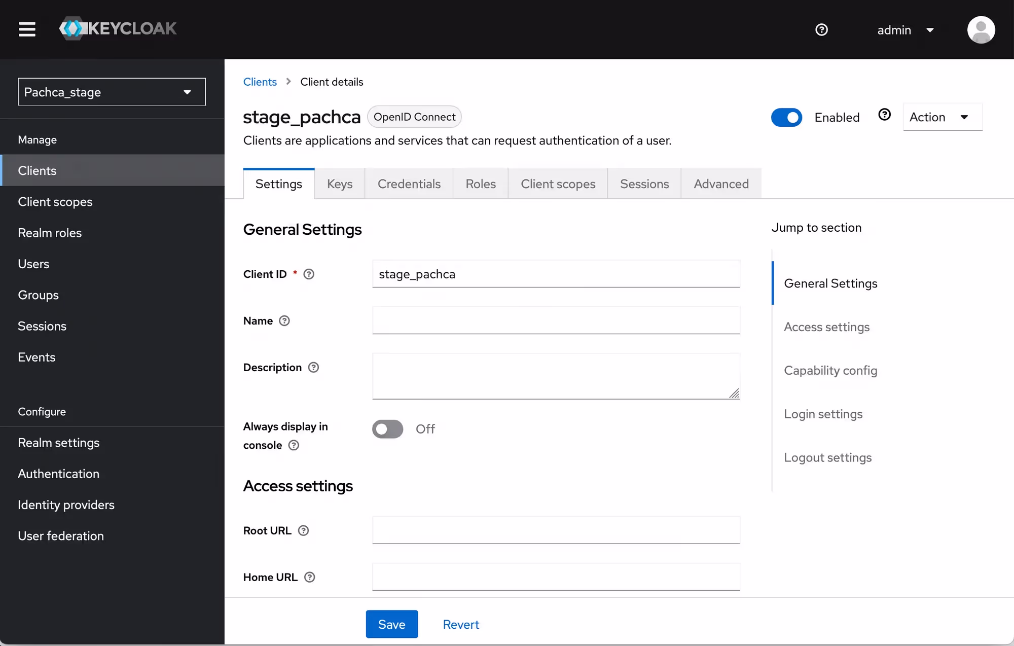 Перейти в Keycloak в настройки клиента созданного для Пачки в разделе "Clients".