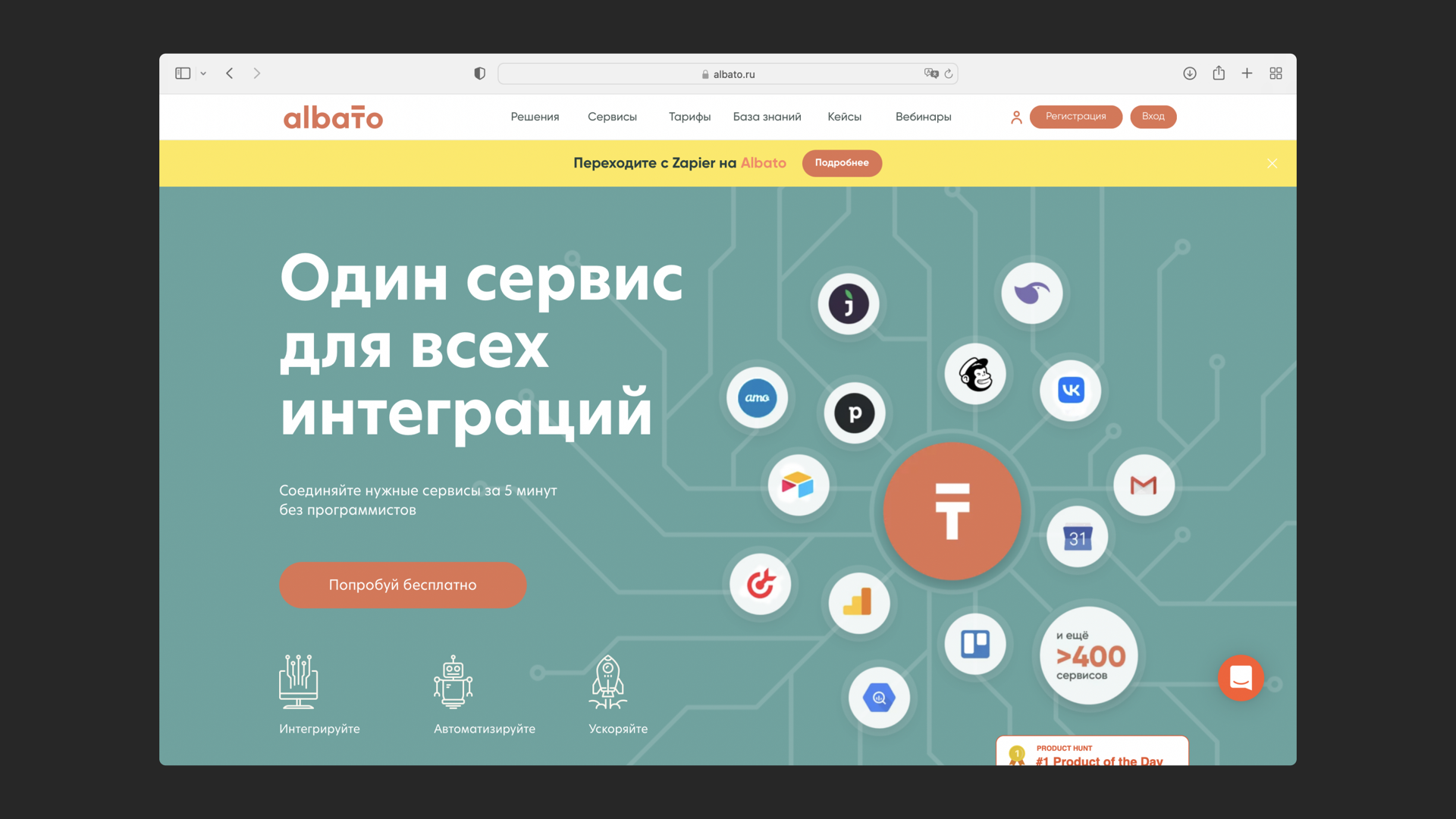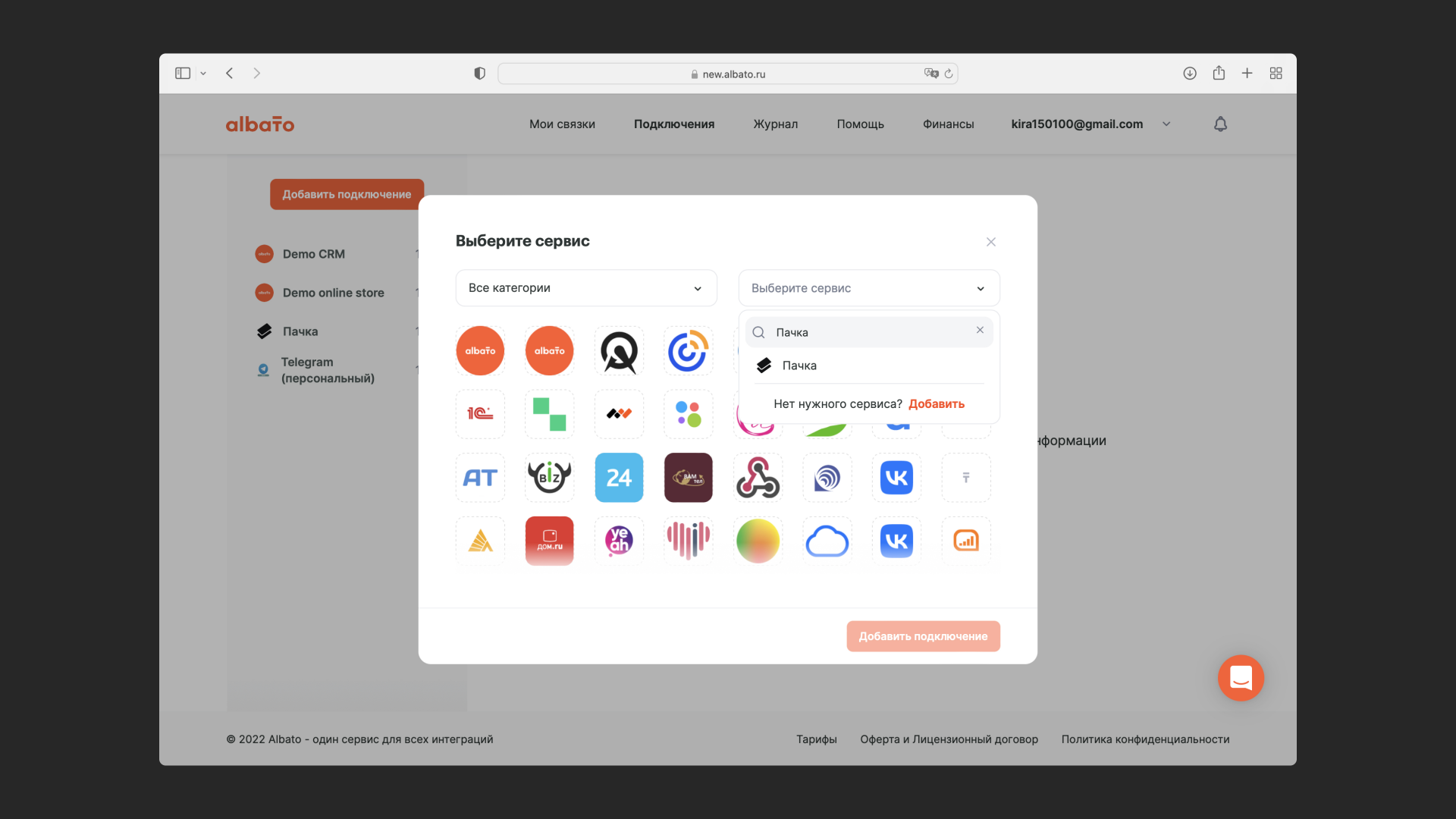 Через Albato к Пачке можно подключить более 250 сервисов.
