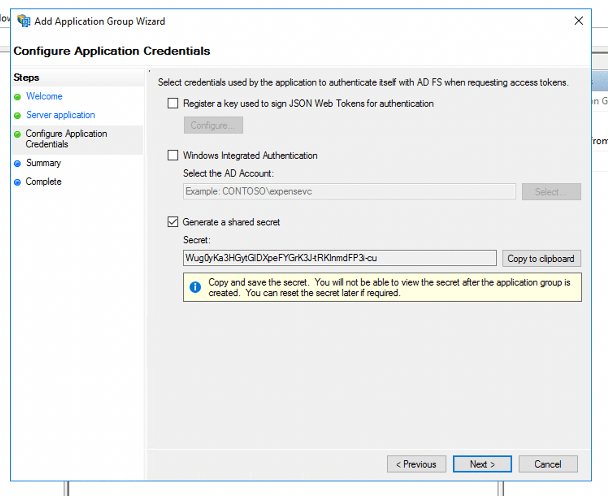 Включите опцию «Generate a shared secret» и скопируйте полученный код.