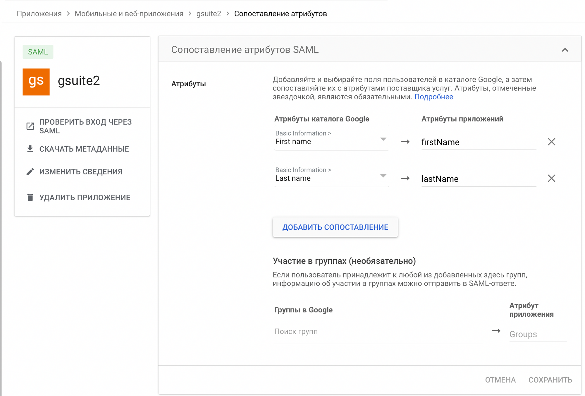 Перейдите в раздел «Сопоставление атрибутов SAML»