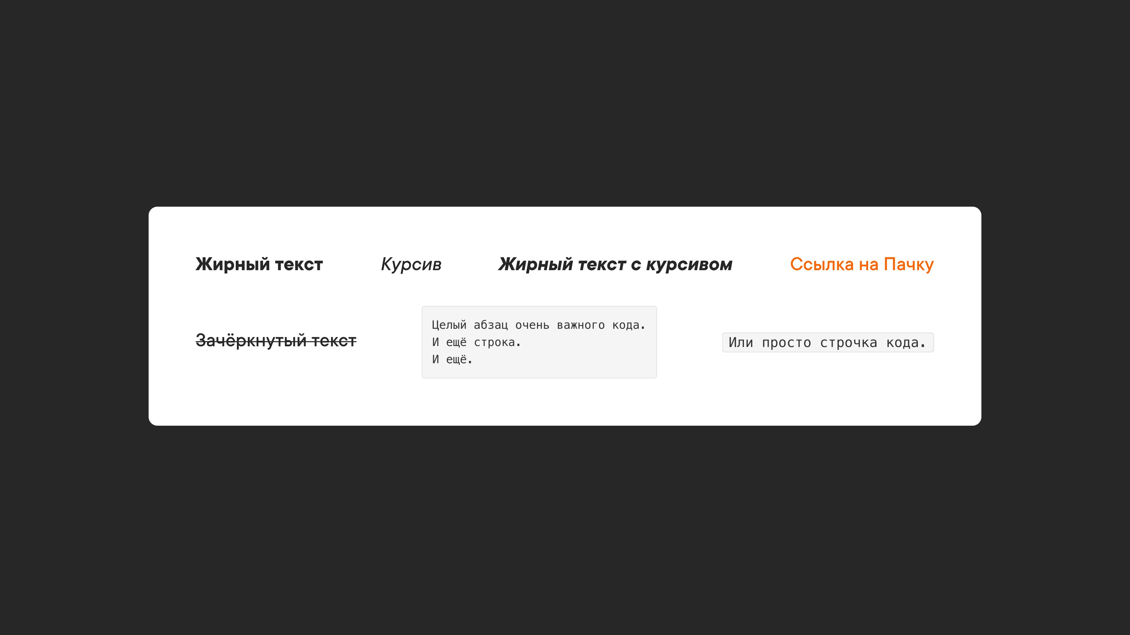 Ниже поля ввода текста нажмите на иконку «Аа», чтобы открыть фиксированное меню форматирования. Также вы можете выделить написанный фрагмент текста и выбрать нужный вариант форматирования. Примененные к тексту стили отобразятся прямо в поле ввода сообщения, а после отправки будут выглядеть одинаково на всех платформах. Вы можете обрамлять текст символами Markdown вручную или использовать горячие клавиши, если вам так удобнее.