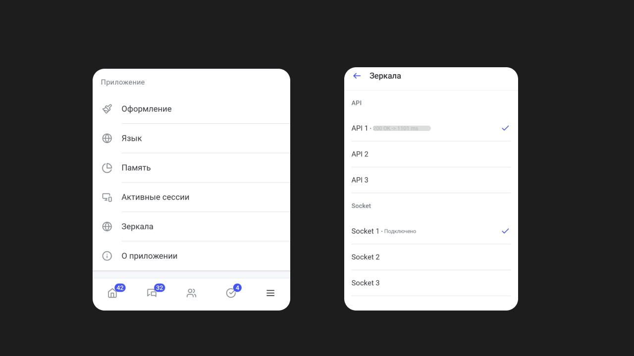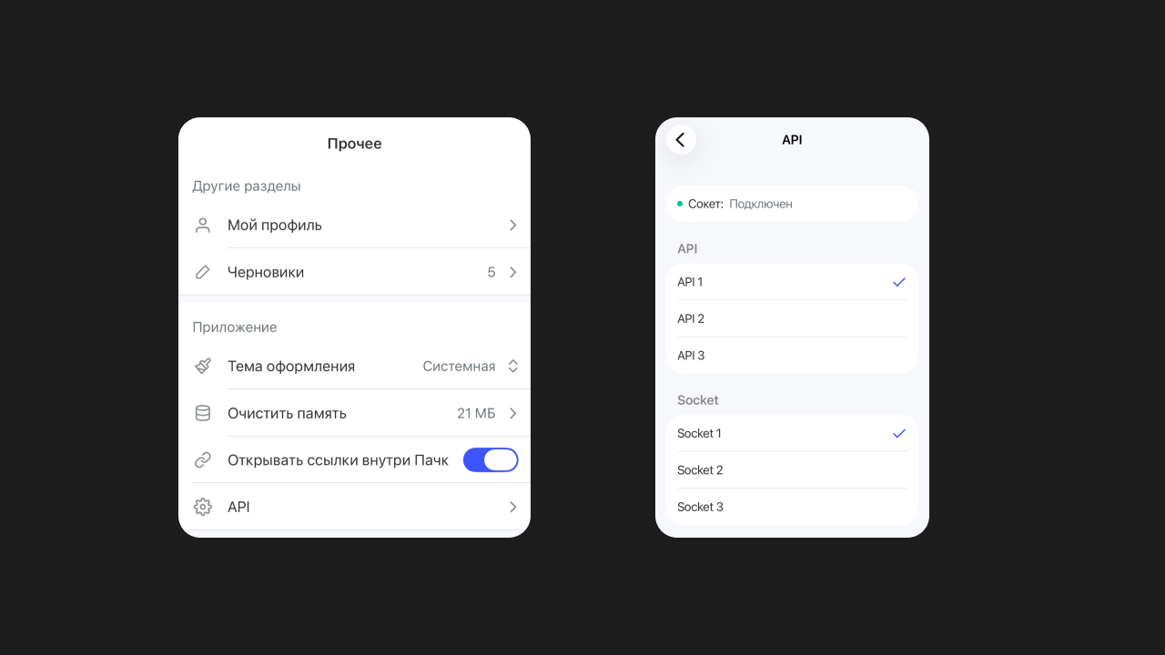 В Пачке можно сменить API-домен — это помогает, если один из адресов недоступен. Если блокировка происходит на уровне провайдера или корпоративной сети — мы можем помочь. Если же в вашей сети разрешены только приложения из белого списка, смена домена, скорее всего, не поможет. Приложение работает через несколько доменов и обычно само переключается между ними. На десктопе и в вебе это происходит автоматически, а на мобильных — домен можно выбрать вручную.