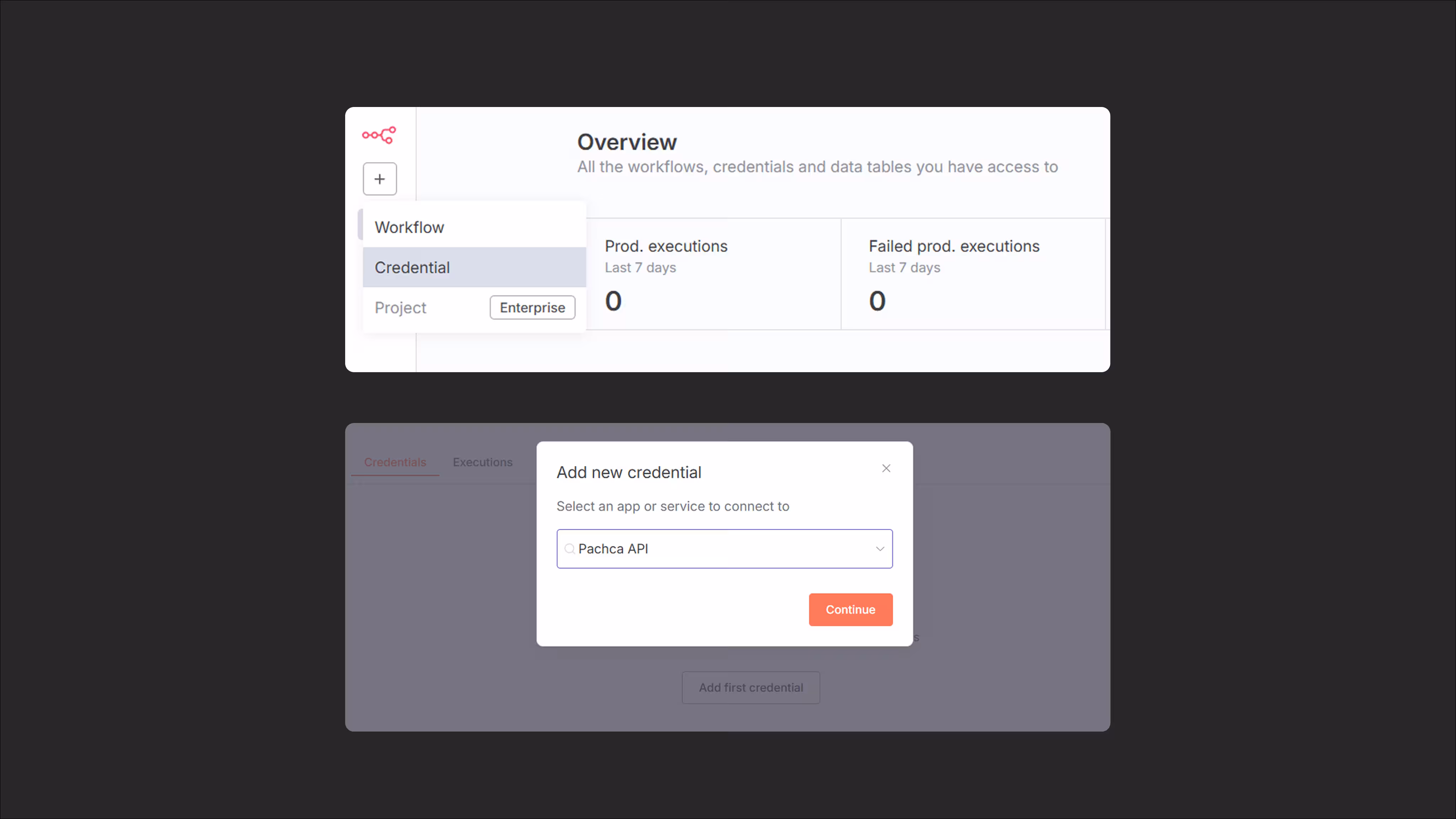 Нажмите Add Credential, найдите Pachca API в списке и заполните поля: