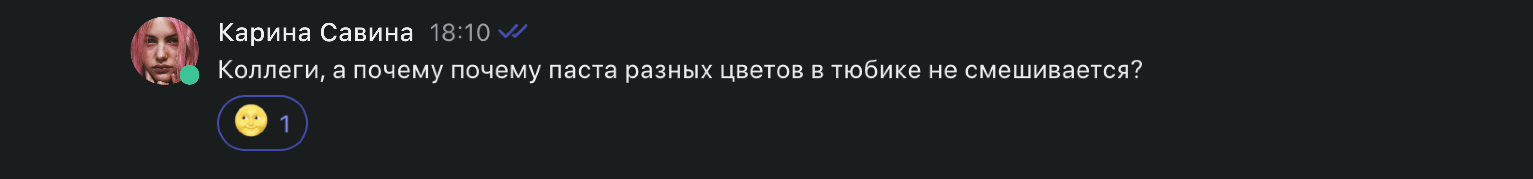Если резюмировать: эмоджи действительно ускоряют рабочее общение. Дать фидбэк ими проще, чем писать ответ, и воспринимаются они легче, чем текст. А еще можно придумать много способов их использования 🙂