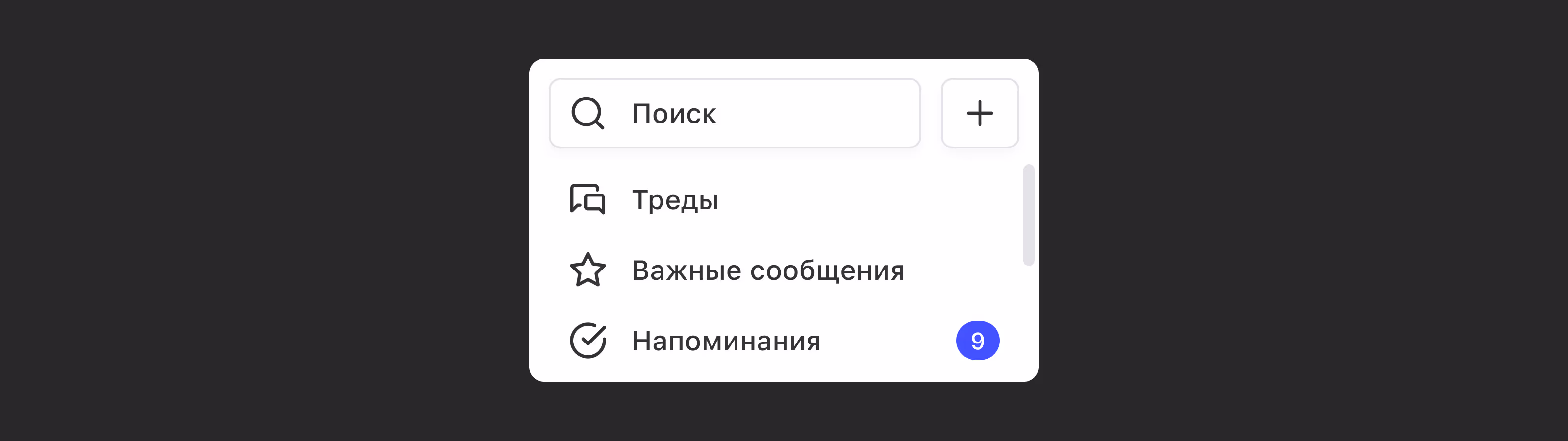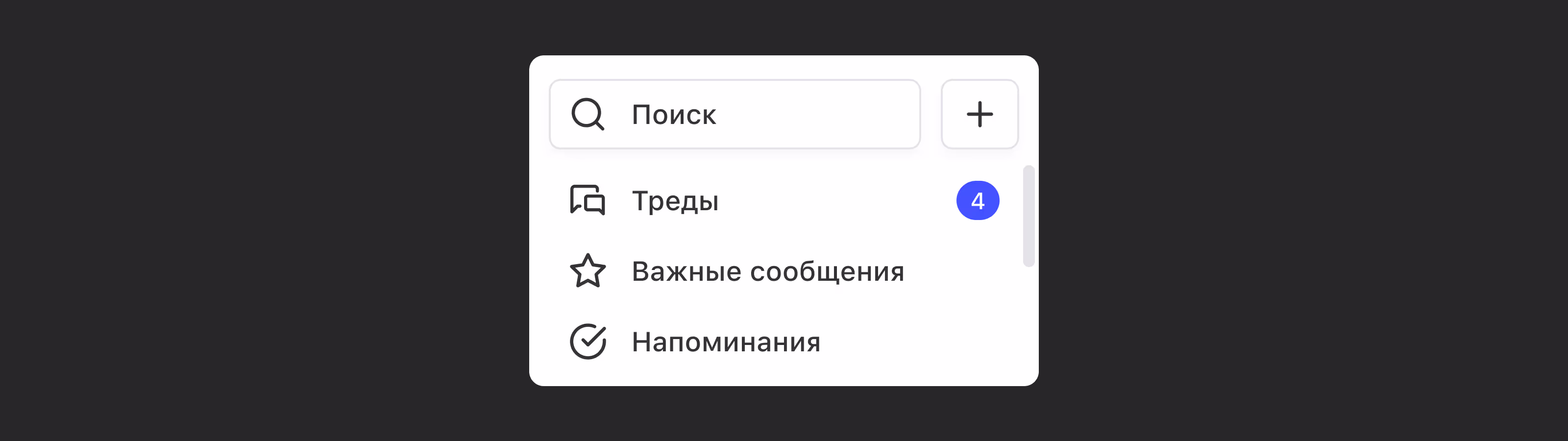 Если в одном из тредов, на который вы подписаны, появились новые комментарии, то рядом с разделом «Треды» в левом меню появится каунтер. Число на нём соотвествует количеству непрочитанных сообщений в тредах. Там же появится бейдж «@», если вас упомянули в одном из тредов.