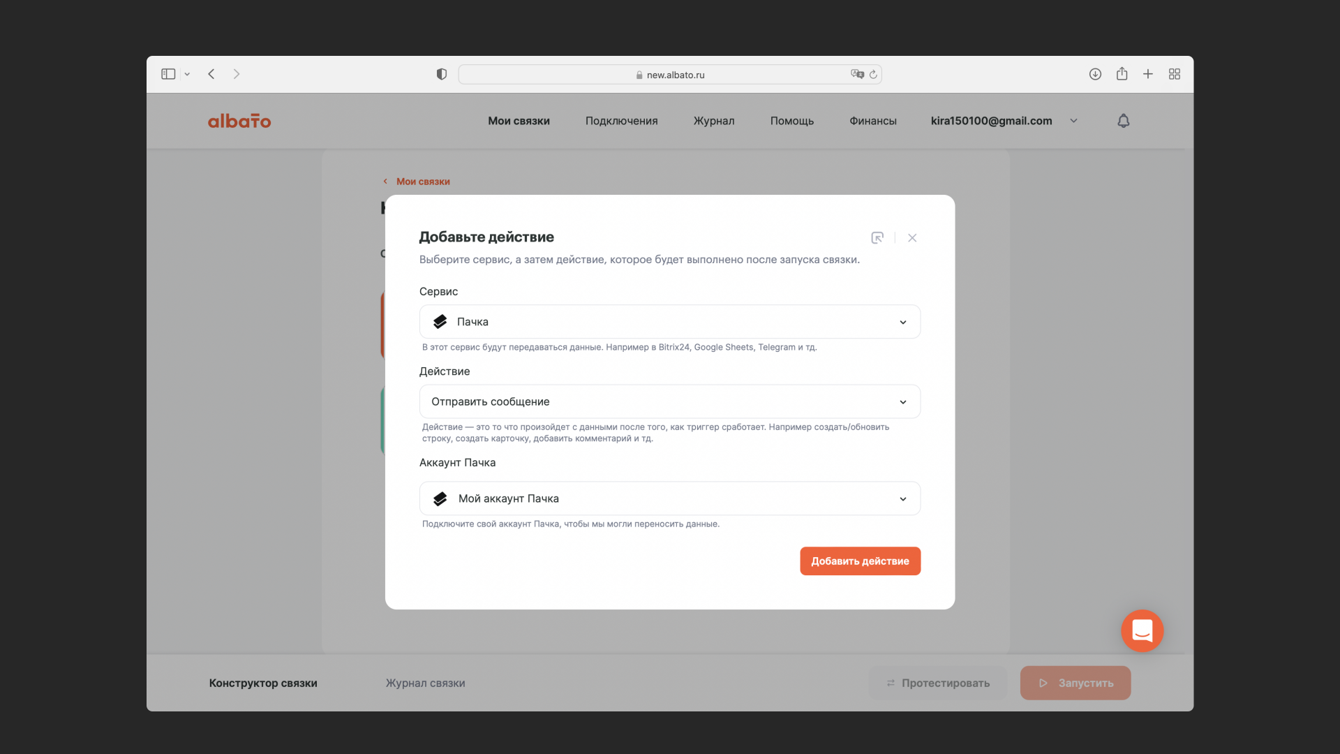 Через Albato к Пачке можно подключить более 250 сервисов.