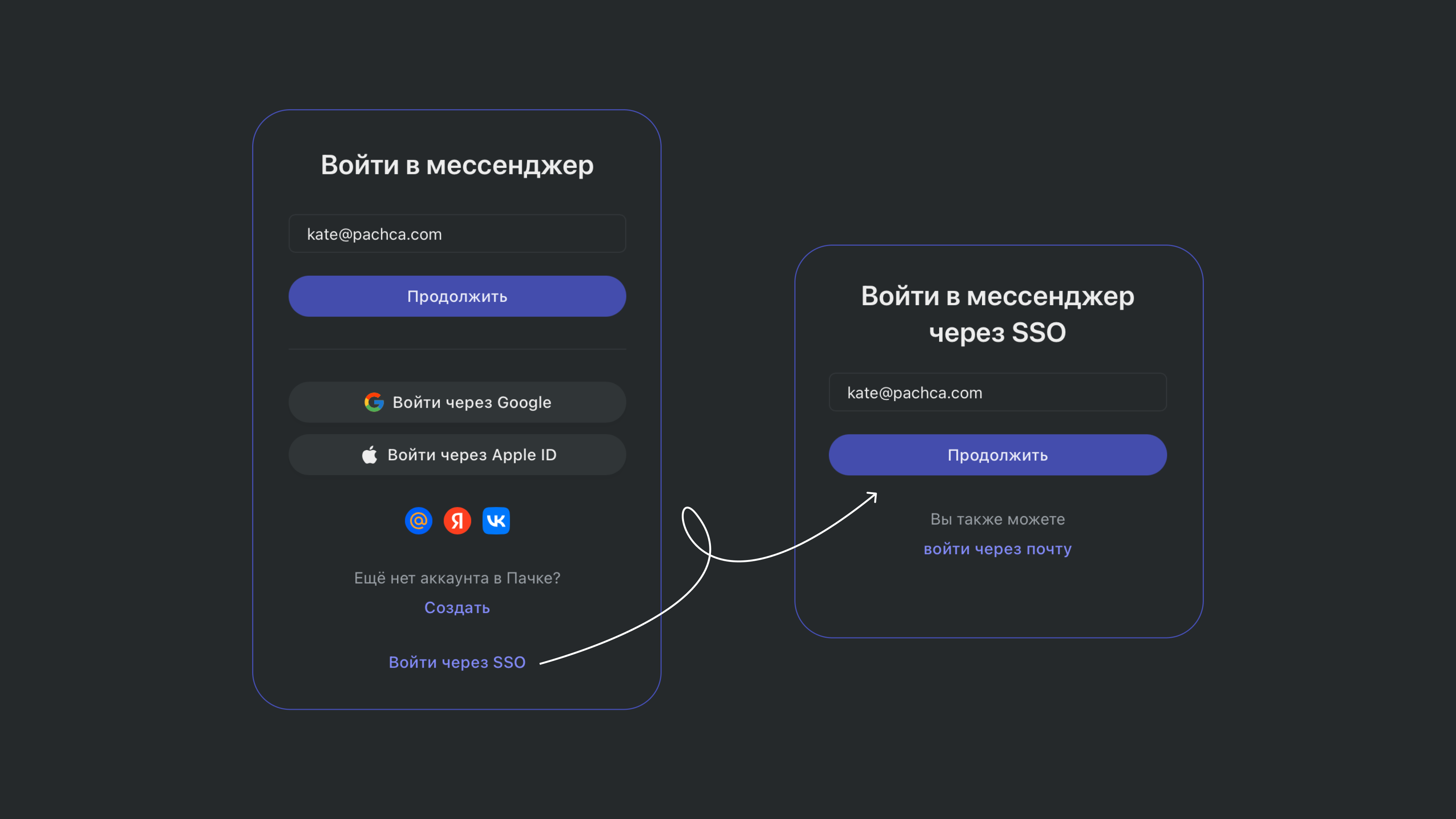 Адрес вашей корпоративной электронной почты понадобится при входе через SSO. Обратите внимание, что вход через SSO происходит на специальной странице.